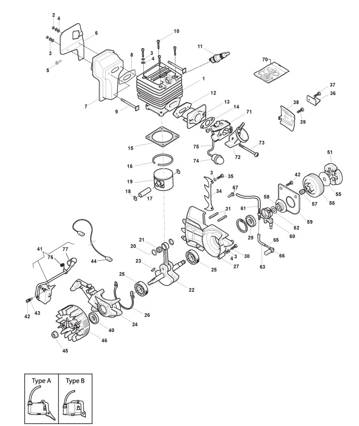 Hier finden Sie alle Ersatzteile von Castelgarden Benzin Kettensägen XC 3700 (228116003/10) ab 2010 aus der Zeichnung Motor (1):