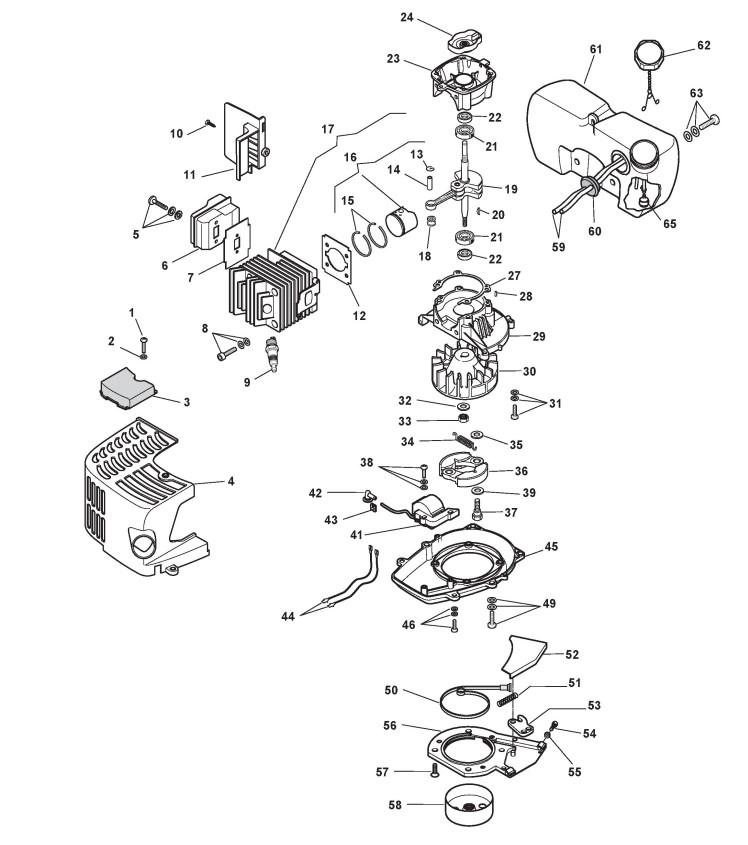 Hier finden Sie alle Ersatzteile von Castelgarden Benzin Heckenschere XH 55 (252800003/09) ab 2010 aus der Zeichnung Motor (1):