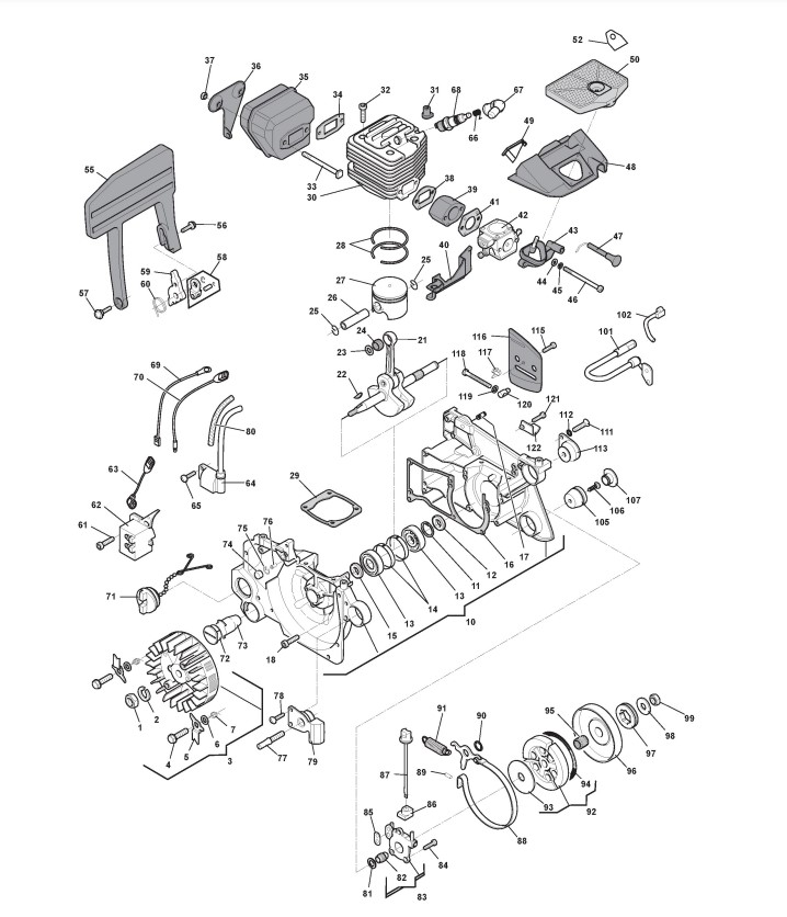 Zeichnungen von Alpina Kettensägen P 680 mit Geräte Nr. 226820000/05Z ab Baujahr 2010