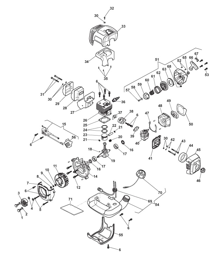 Hier finden Sie alle Ersatzteile von Castelgarden Benzin Freischneider XB 226 J (287120103/C19) ab 2019 aus der Zeichnung Motor (2):