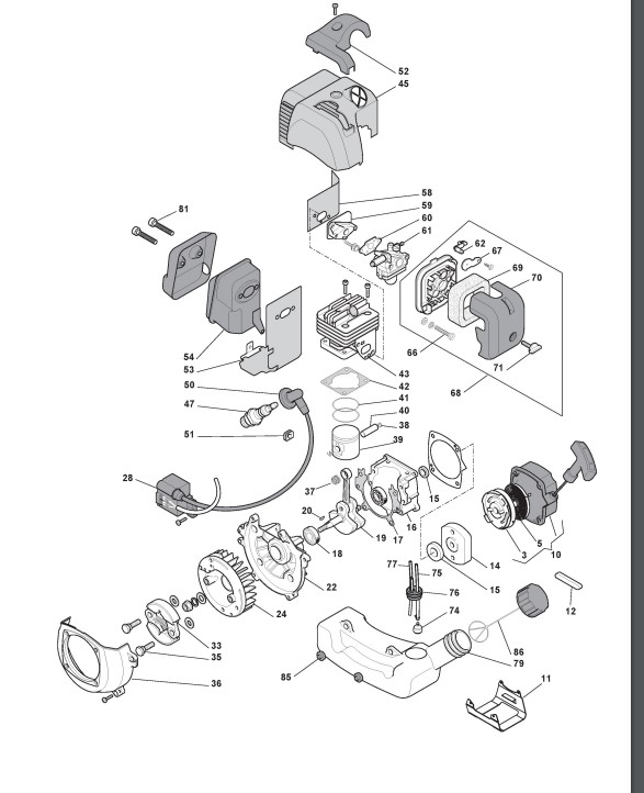 Hier finden Sie alle Ersatzteile von Castelgarden Benzin Freischneider XB 34 (280820003/10) ab 2012 aus der Zeichnung Motor (2):