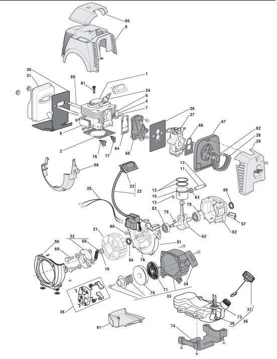 Hier finden Sie alle Ersatzteile von Castelgarden Benzin Freischneider XB 44 (281720003/08) ab 2008 aus der Zeichnung Motor (2):