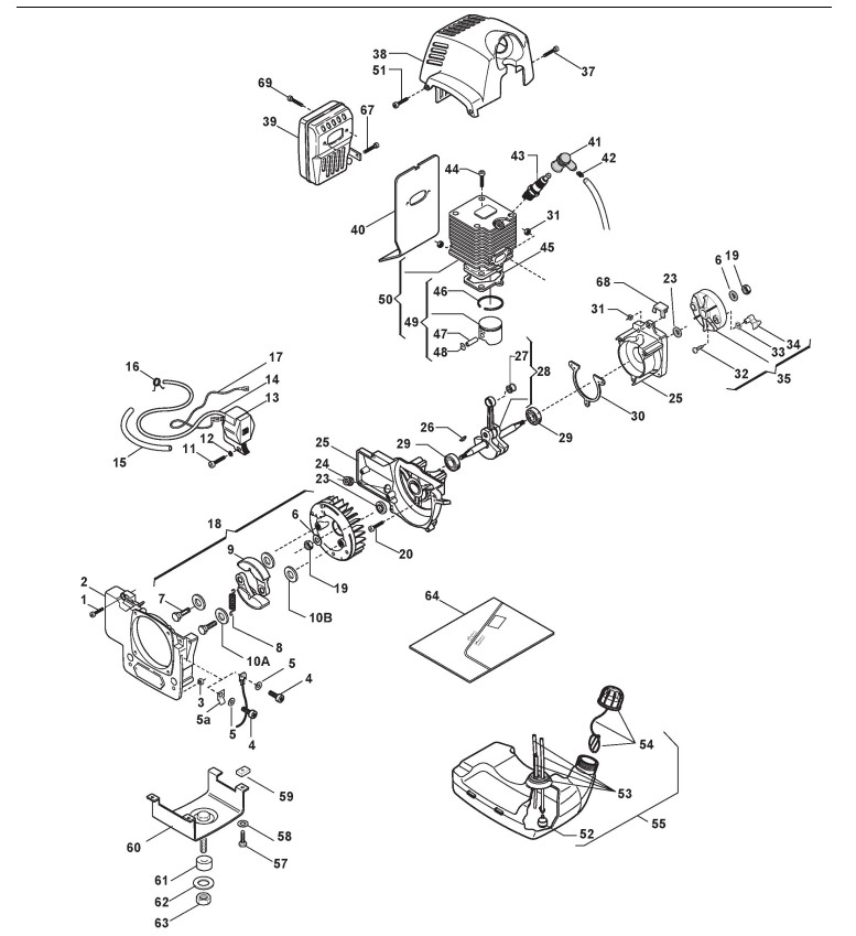 Zeichnung von Castelgarden Benzin Freischneider XB 55 F (285522003/04) ab 2005: