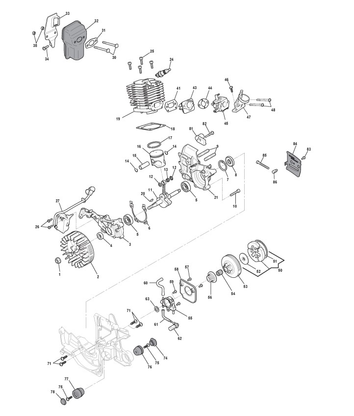Hier finden Sie alle Ersatzteile von Castelgarden Benzin Kettensägen PS 338 ORANGE (222216011/06) ab 2007 aus der Zeichnung Motor (2):