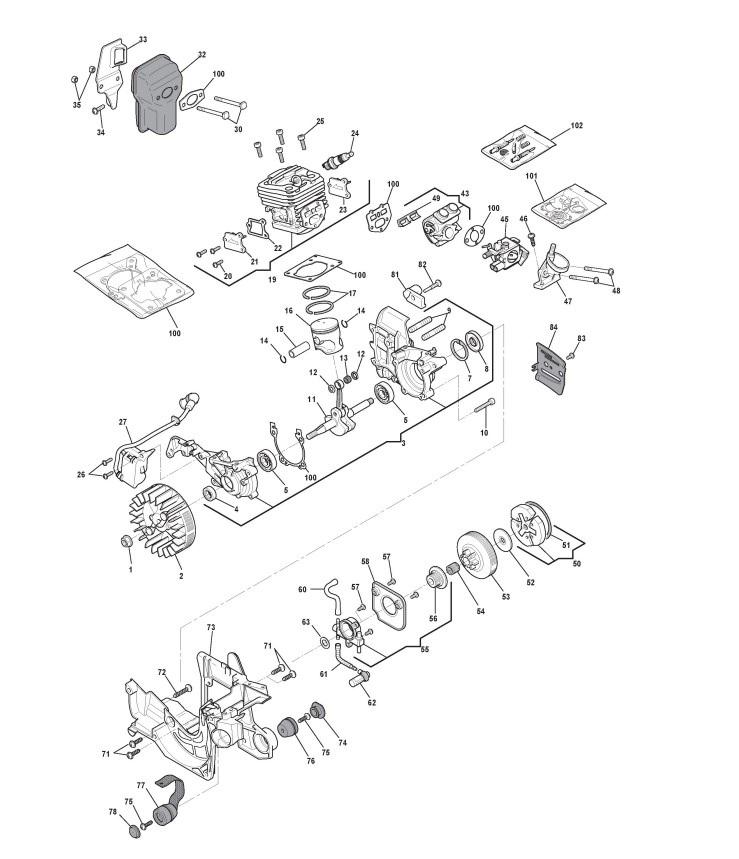 Hier finden Sie alle Ersatzteile von Castelgarden Benzin Kettensägen XC 42 (224218003/GI) ab 2007 aus der Zeichnung Motor (2):