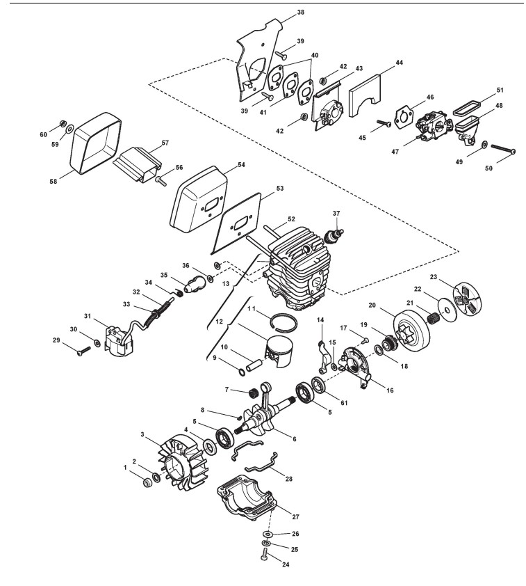 Hier finden Sie alle Ersatzteile von Castelgarden Benzin Kettensägen XC 48 (223418003/05) ab 2007 aus der Zeichnung Motor (2):