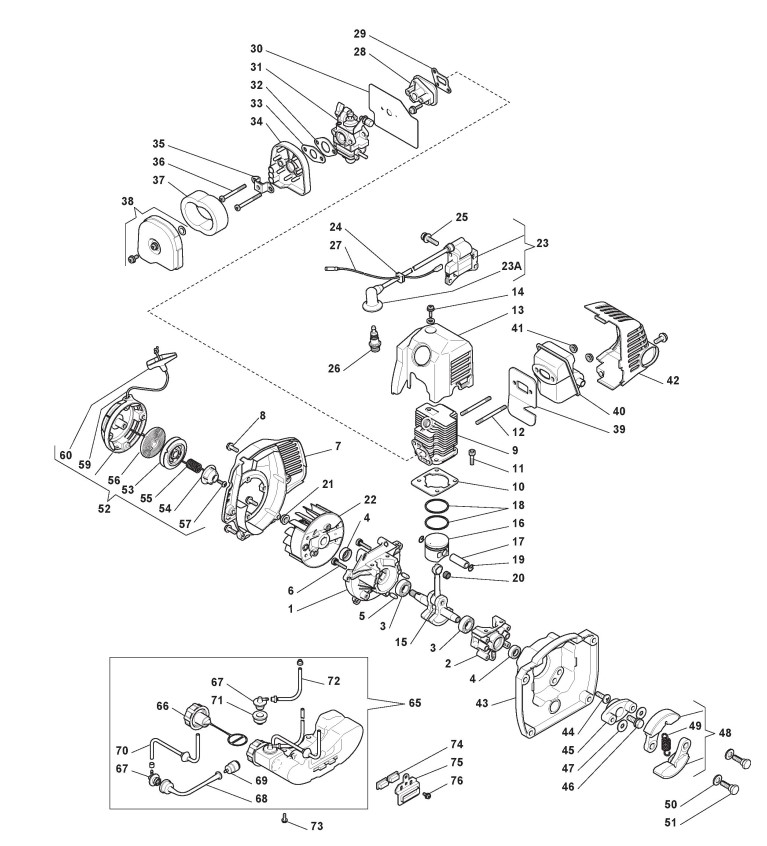 Hier finden Sie alle Ersatzteile von Castelgarden Benzin Heckenschere XHM 60 (251460003/09) ab 2011 aus der Zeichnung Motor (2):