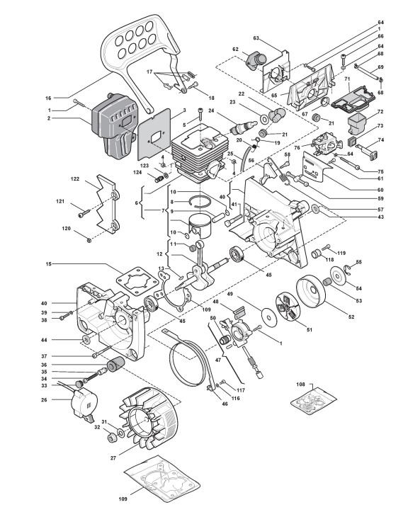 Zeichnungen von Stiga Kettensägen SP 522 mit Geräte Nr. 224213002/08 ab Baujahr 2005
