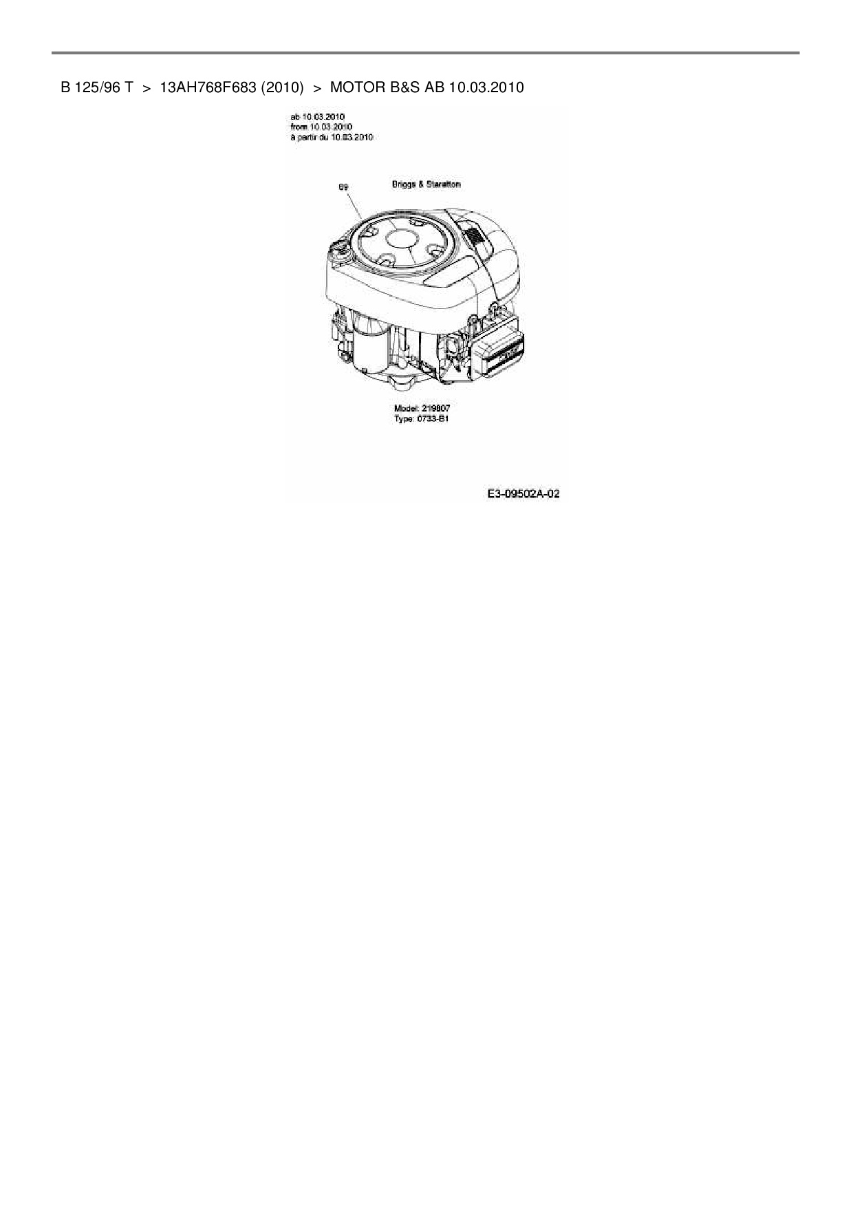 Ersatzteile für Rasentraktor Black-Line B 125/96 T aus der Zeichnung Motor B&S ab 10.03.2010: