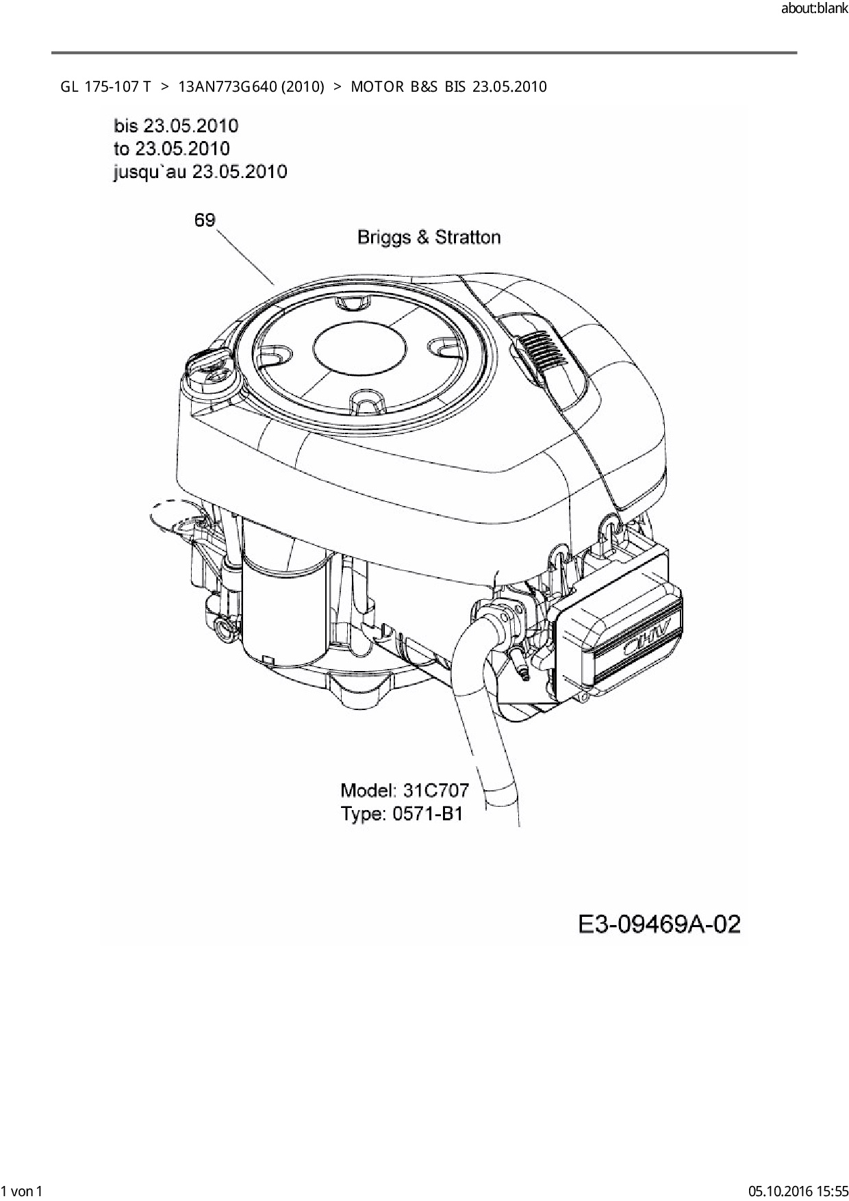 Ersatzteile für Rasentraktor Gartenland GL 175-107 T aus der Zeichnung Motor B&S bis 23.05.2010: