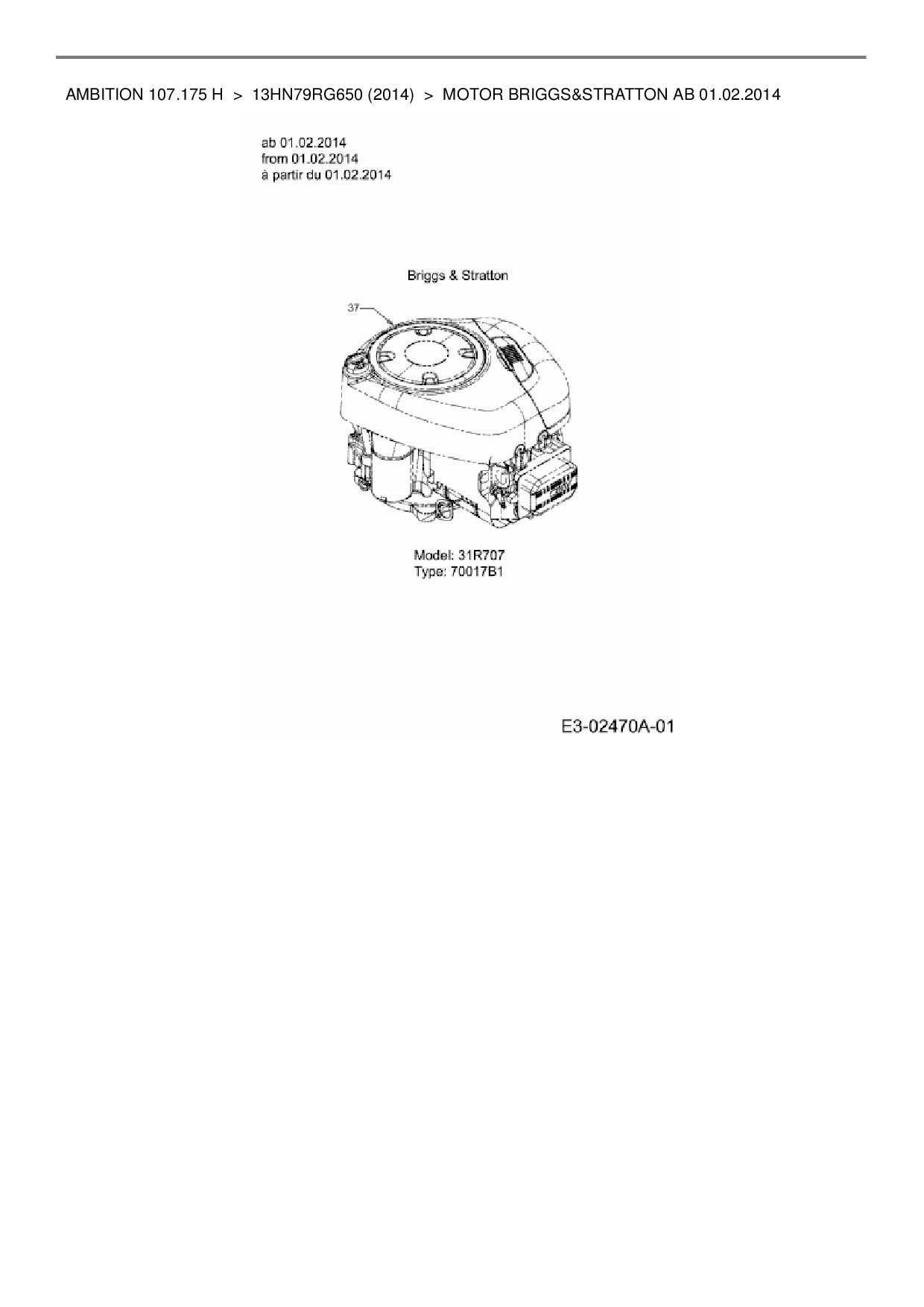 Ersatzteile für Rasentraktor Wolf-Garten Ambition 107.175 H aus der Zeichnung Motor Briggs&Stratton ab 01.02.2014: