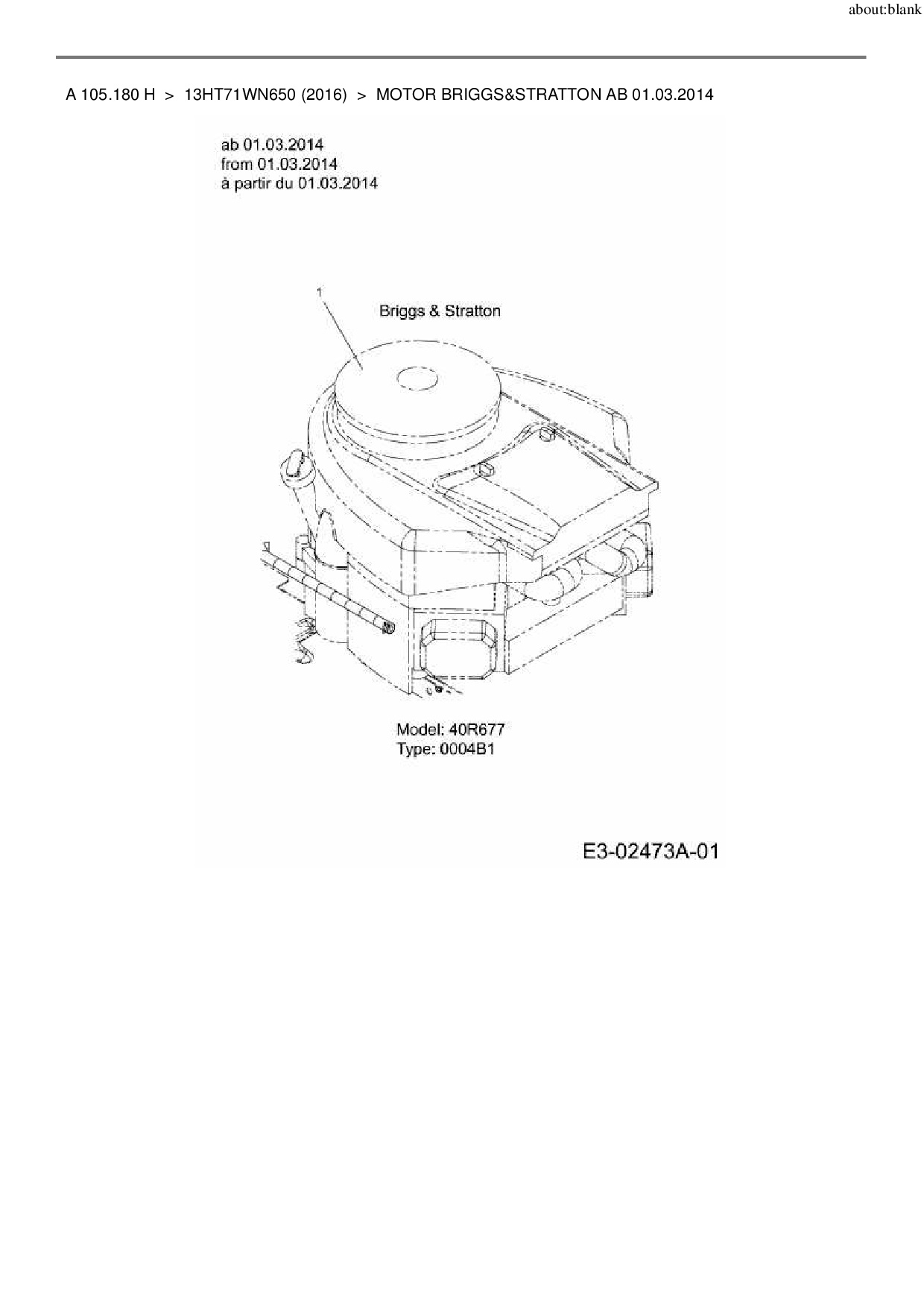Ersatzteile für Rasentraktor Wolf-Garten A 105.180 H aus der Zeichnung Motor Briggs&Stratton ab 01.03.2014: