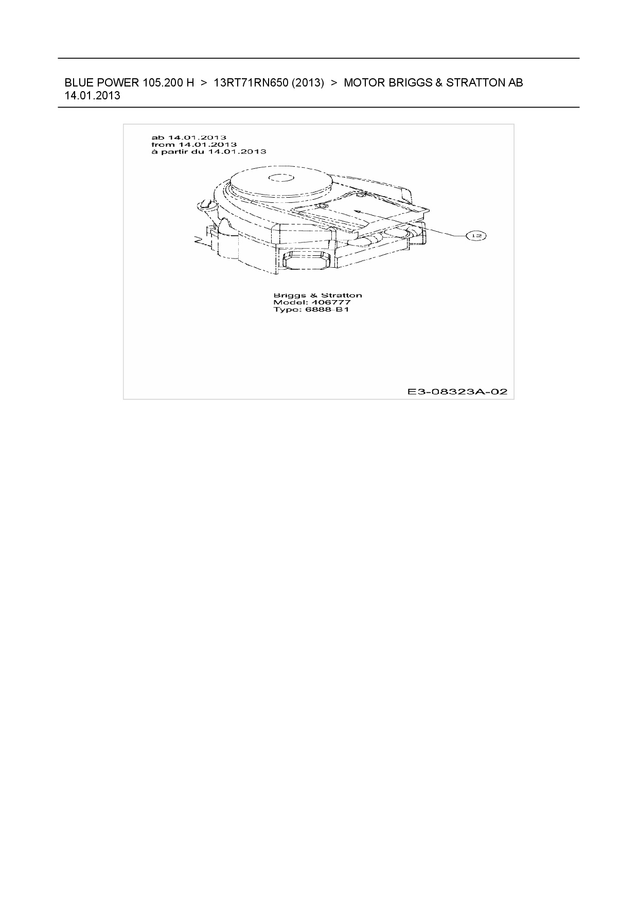 Ersatzteile für Rasentraktor Wolf-Garten Blue Power 105.200 H aus der Zeichnung Motor Briggs & Stratton ab 14.01.2013:
