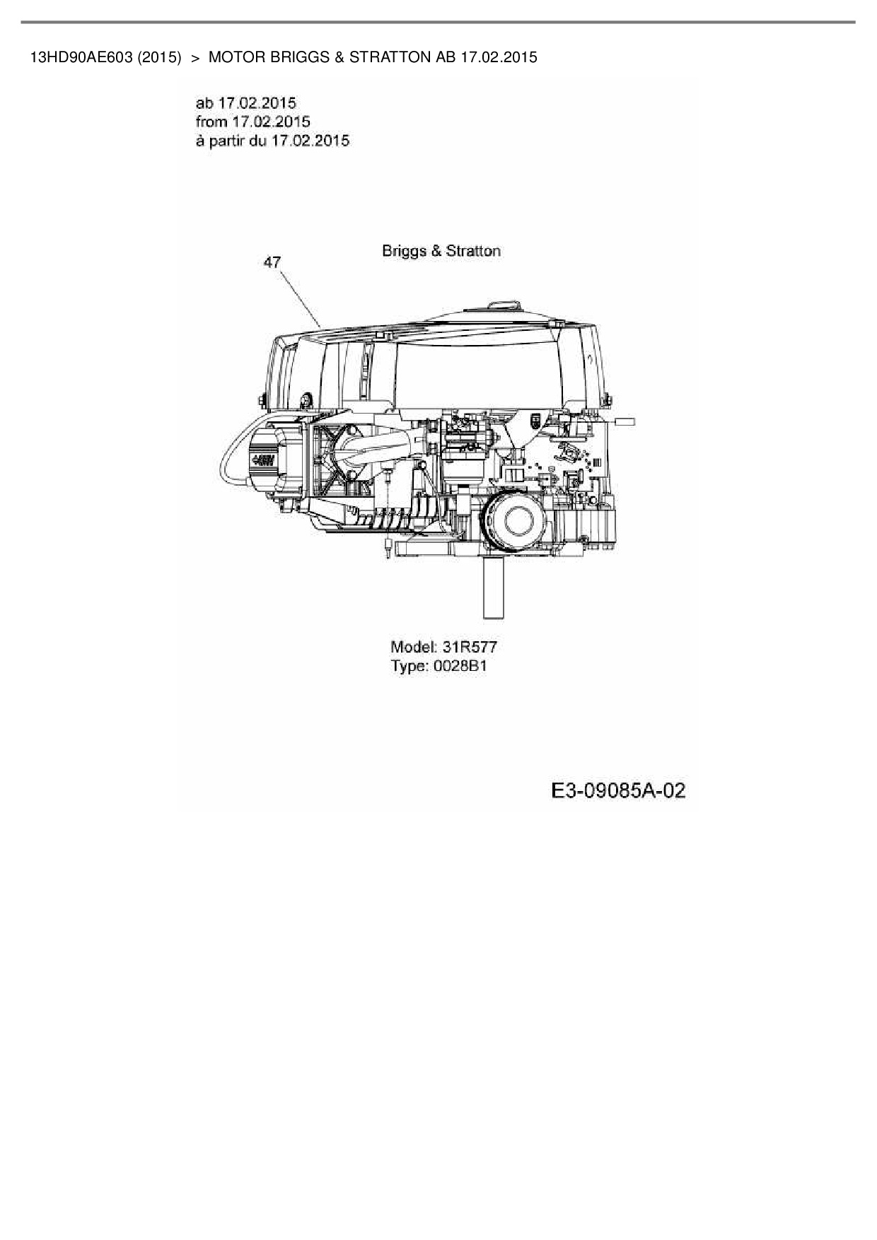 Ersatzteile für Rasentraktor Cub Cadet CC 1016 AE aus der Zeichnung Motor Briggs & Stratton ab 17.02.2015: