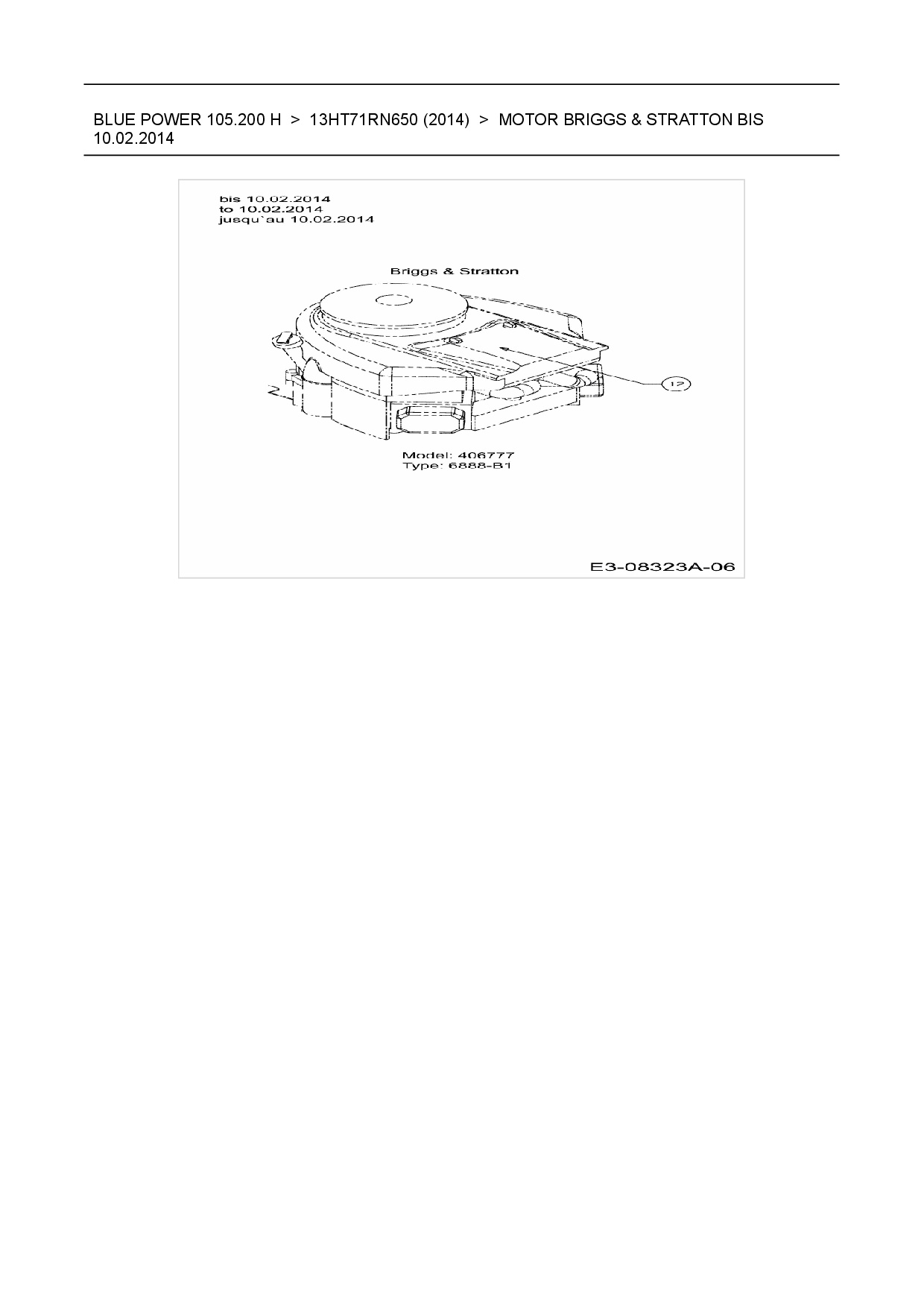 Ersatzteile für Rasentraktor Wolf-Garten Blue Power 105.200 H aus der Zeichnung Motor Briggs & Stratton bis 10.02.2014: