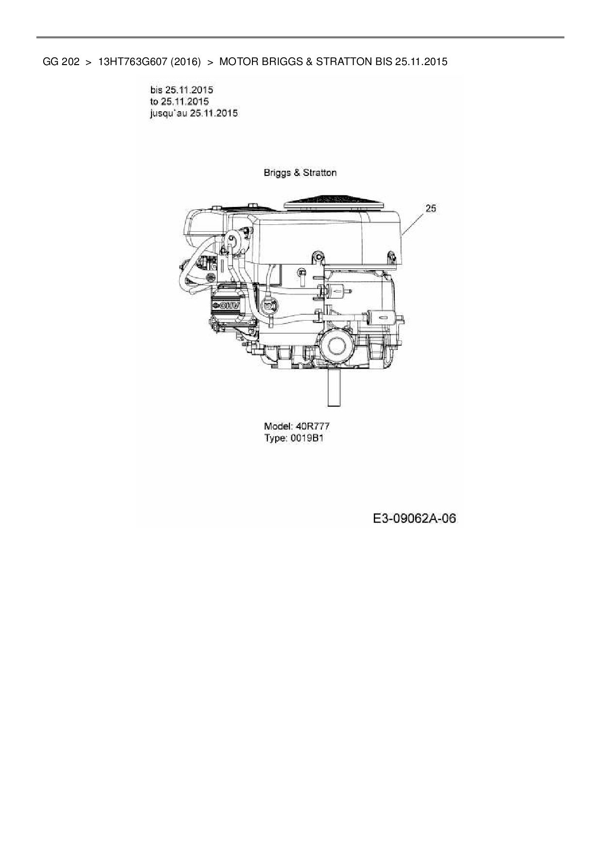 Ersatzteile für Rasentraktor Blisar GG 202 aus der Zeichnung Motor Briggs & Stratton bis 25.11.2015: