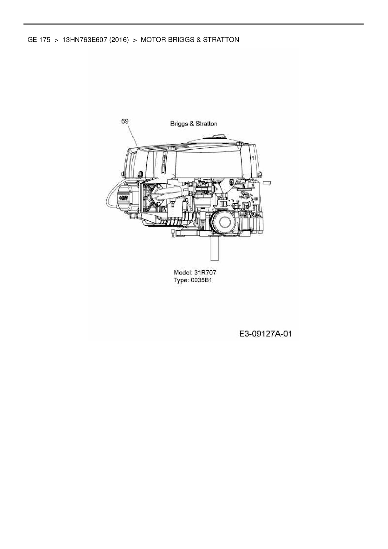 Ersatzteile für Rasentraktor Blisar GE 175 aus der Zeichnung Motor Briggs & Stratton: