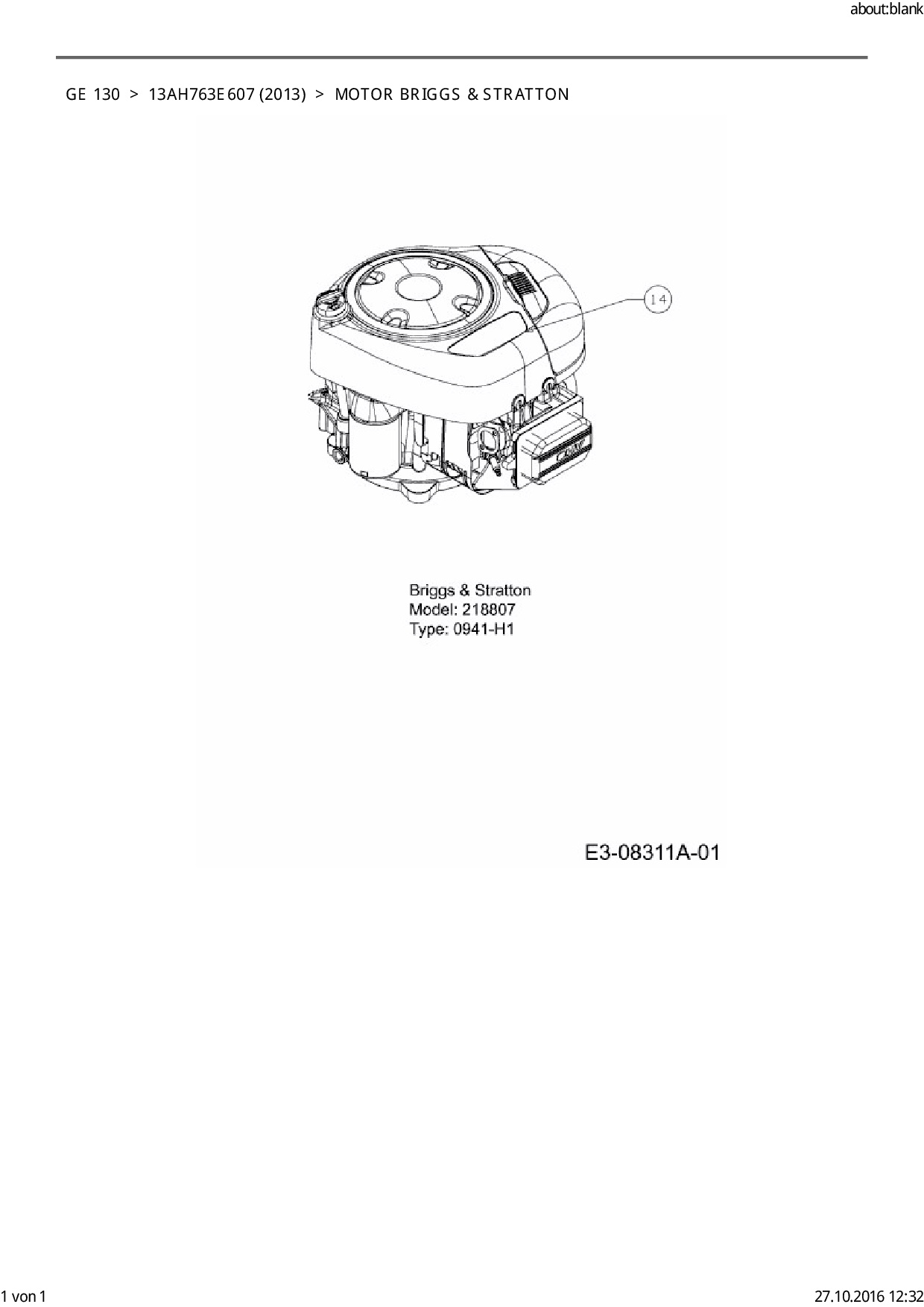 Ersatzteile für Rasentraktor Blisar GE 130 aus der Zeichnung Motor Briggs & Stratton: