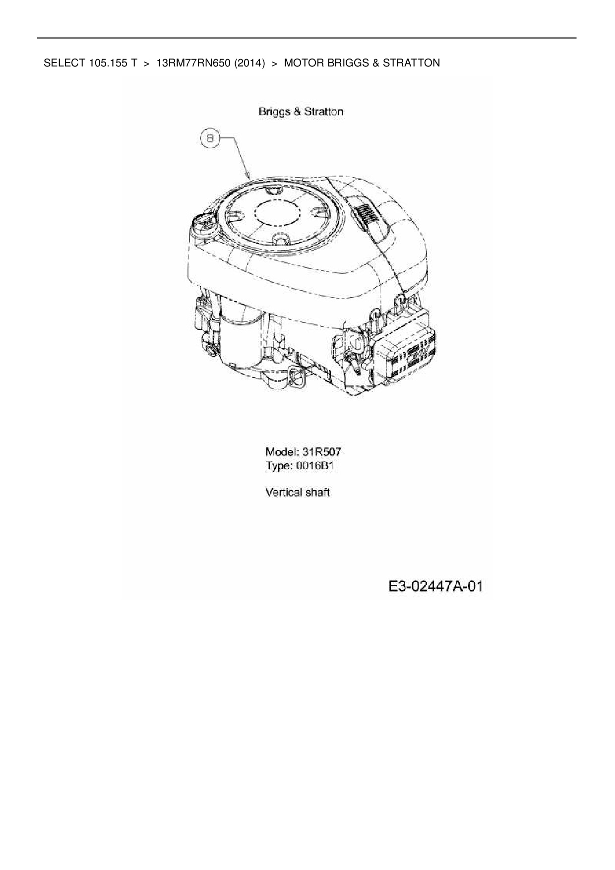 Ersatzteile für Rasentraktor Wolf-Garten Select 105.155 T aus der Zeichnung Motor Briggs & Stratton: