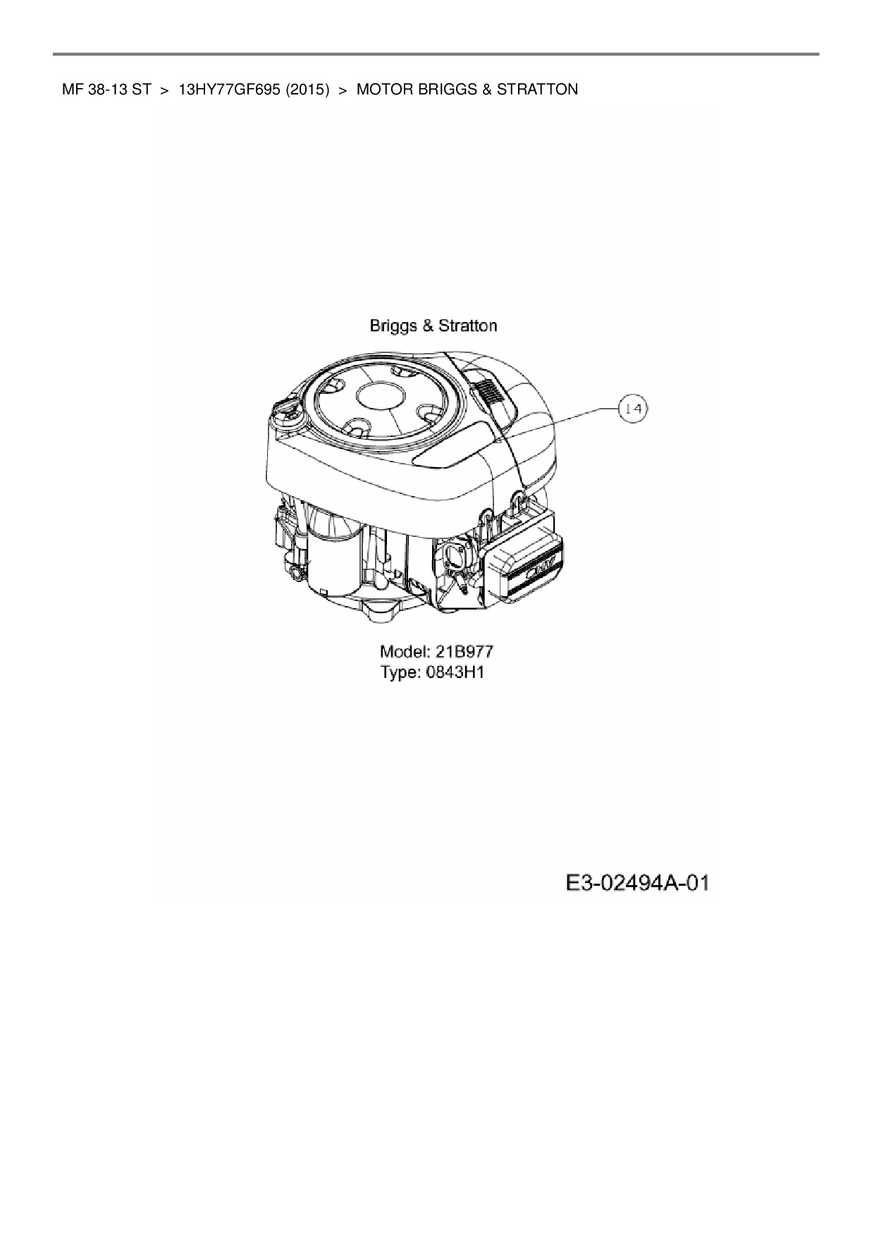 Ersatzteile für Rasentraktor Massey Ferguson MF 38-13 ST aus der Zeichnung Motor Briggs & Stratton: