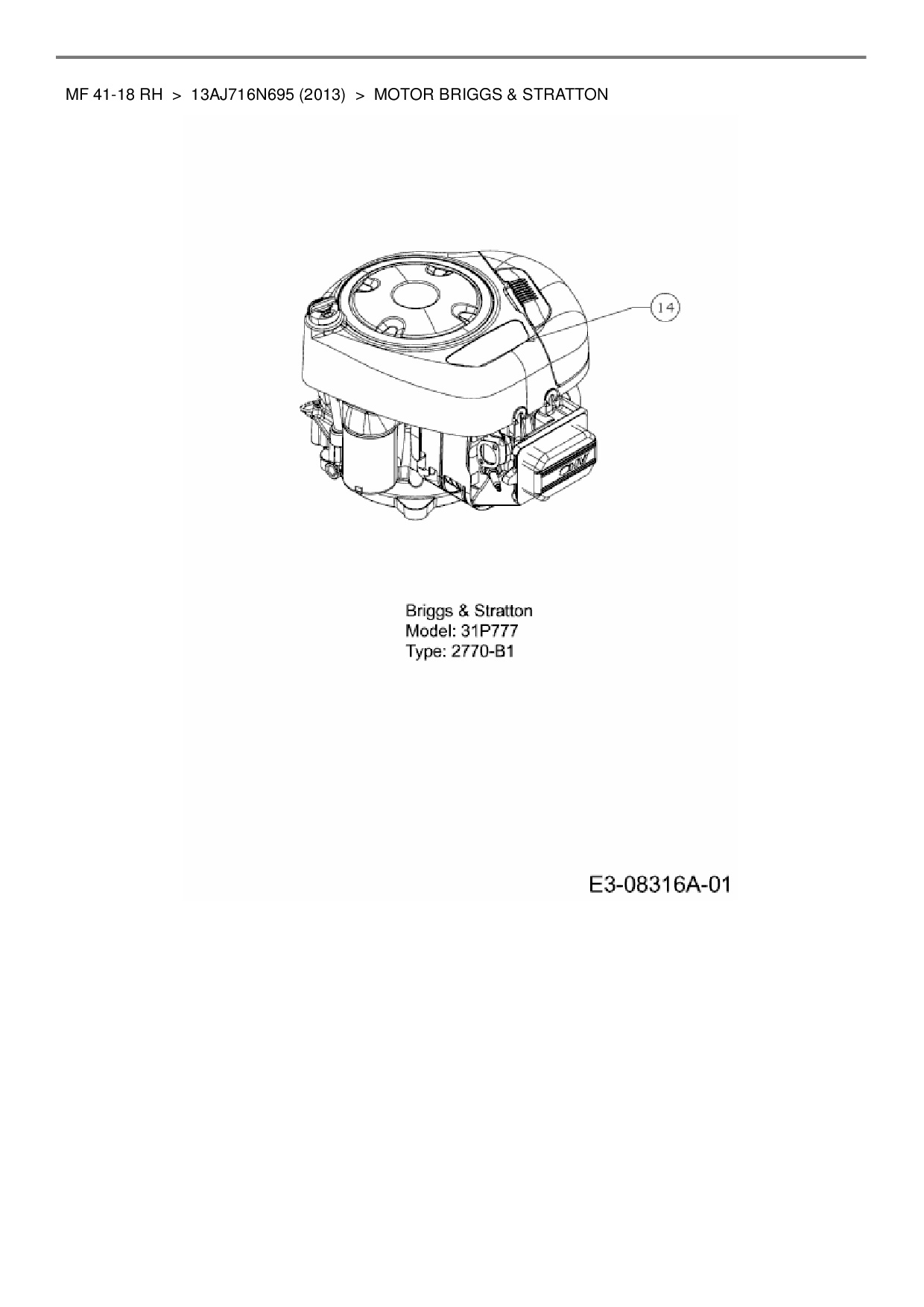 Ersatzteile für Rasentraktor Massey Ferguson MF 41-18 RH aus der Zeichnung Motor Briggs & Stratton: