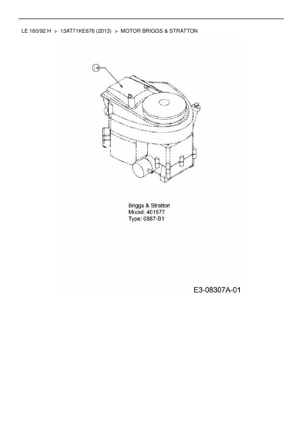 Ersatzteile für Rasentraktor MTD LE 160/92 H aus der Zeichnung Motor Briggs & Stratton: