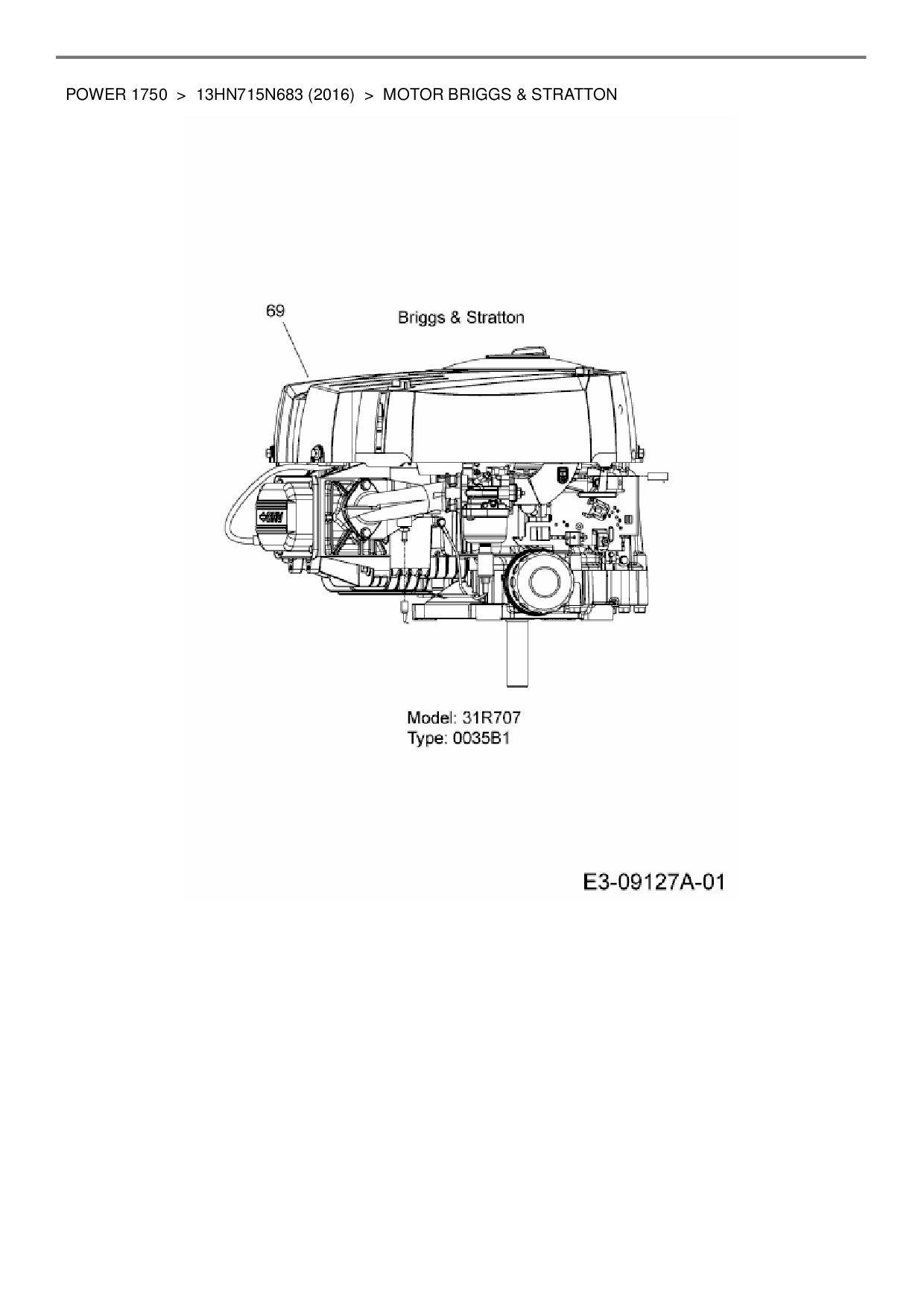 Ersatzteile für Rasentraktor MTD Power 1750 aus der Zeichnung Motor Briggs & Stratton: