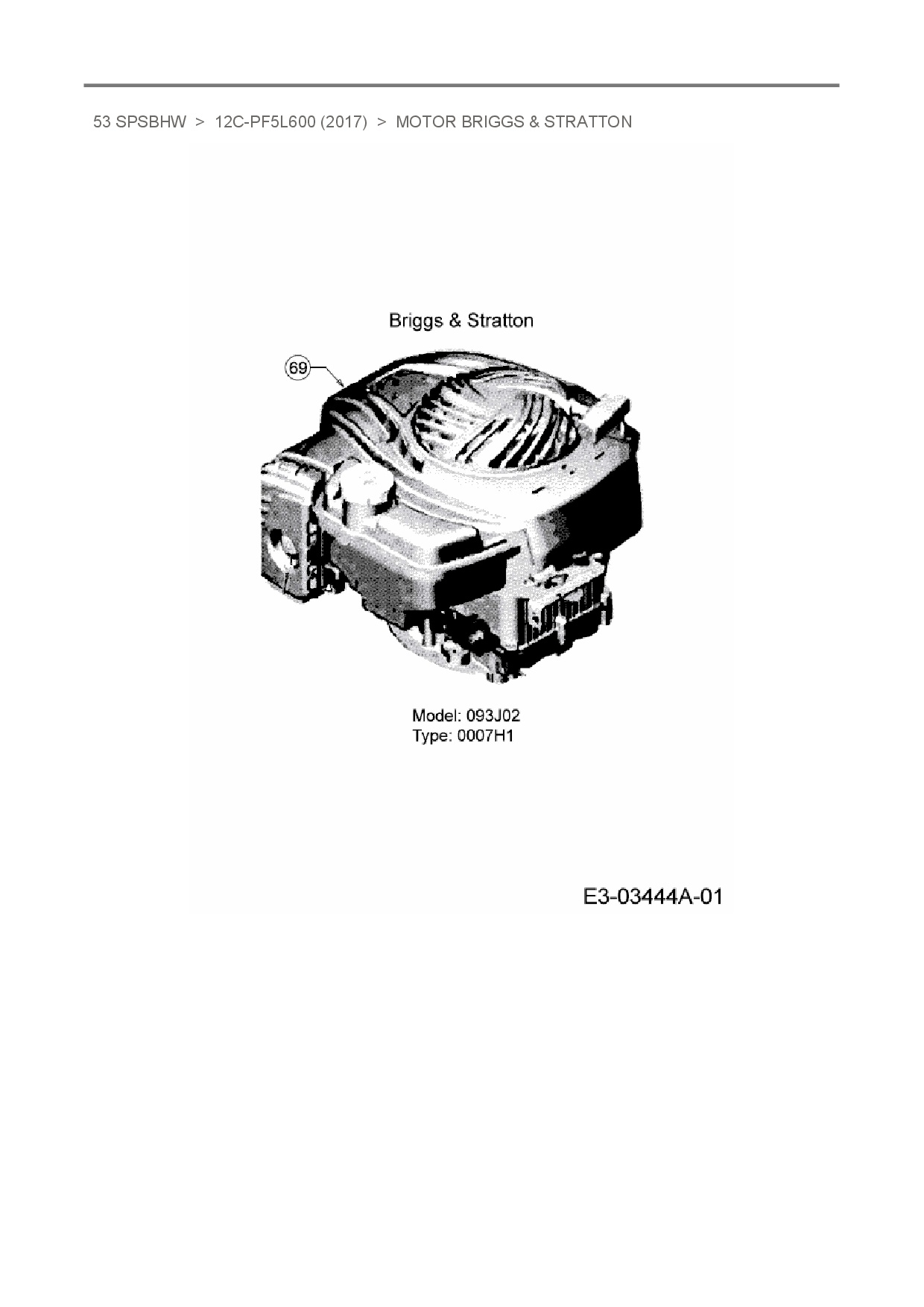 Ersatzteile für Motormäher mit Antrieb MTD 53 SPSBHW aus der Zeichnung Motor Briggs & Stratton:
