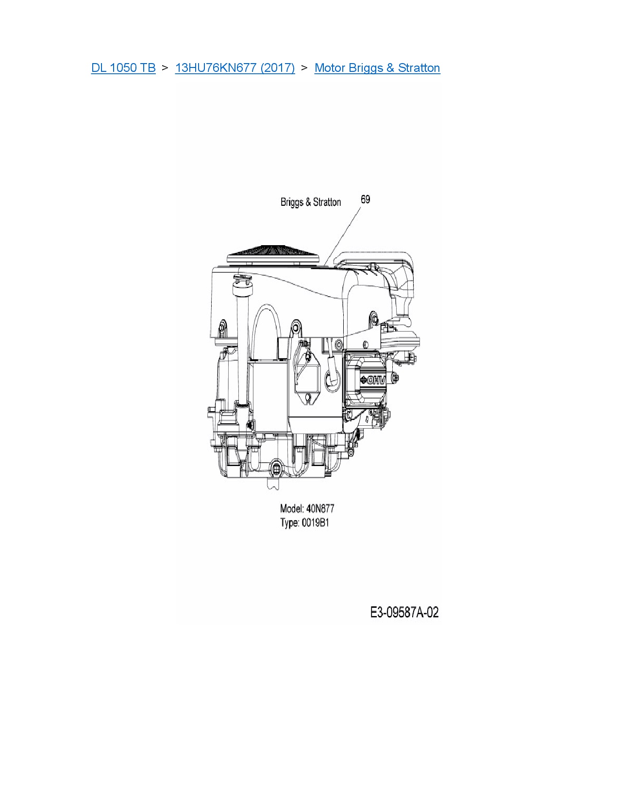 Ersatzteile für Rasentraktor MTD DL 1050 TB aus der Zeichnung Motor Briggs & Stratton: