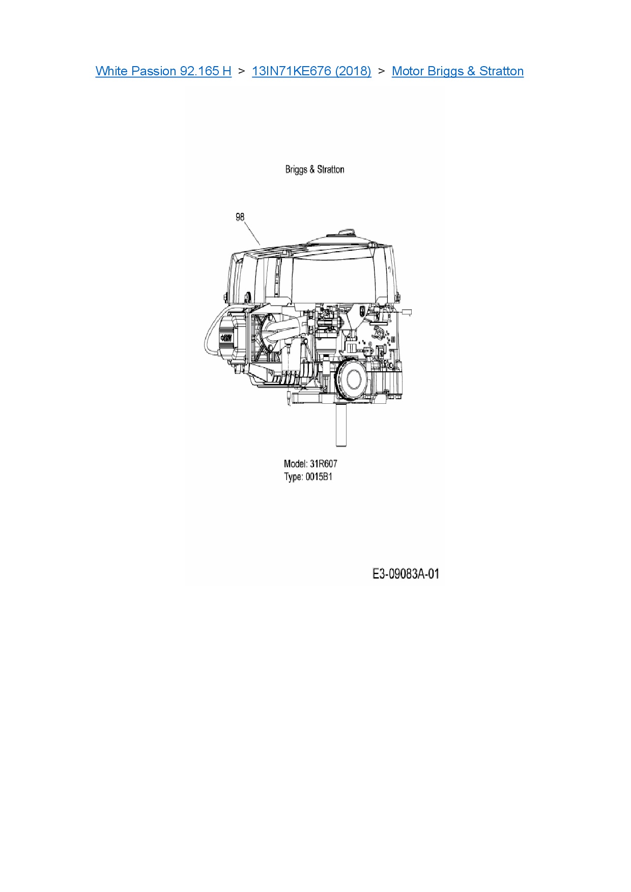 Ersatzteile für Rasentraktor MTD White Passion 92.165 H aus der Zeichnung Motor Briggs & Stratton: