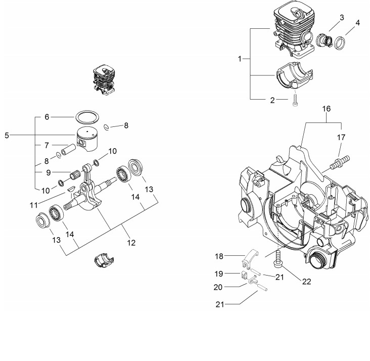 Zeichnung von ECHO Motorsägen CS-310ES CS-310ES bis S.-Nr.: 37010000 Motor CS-310ES bis S.-Nr.: 37010000: