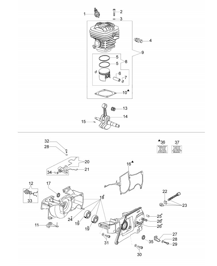 Hier finden Sie alle Ersatzteile für Oleo-Mac Motorsäge GS 820 aus der Zeichnung für Motor-Gehäuse GS 820 Motorsäge: