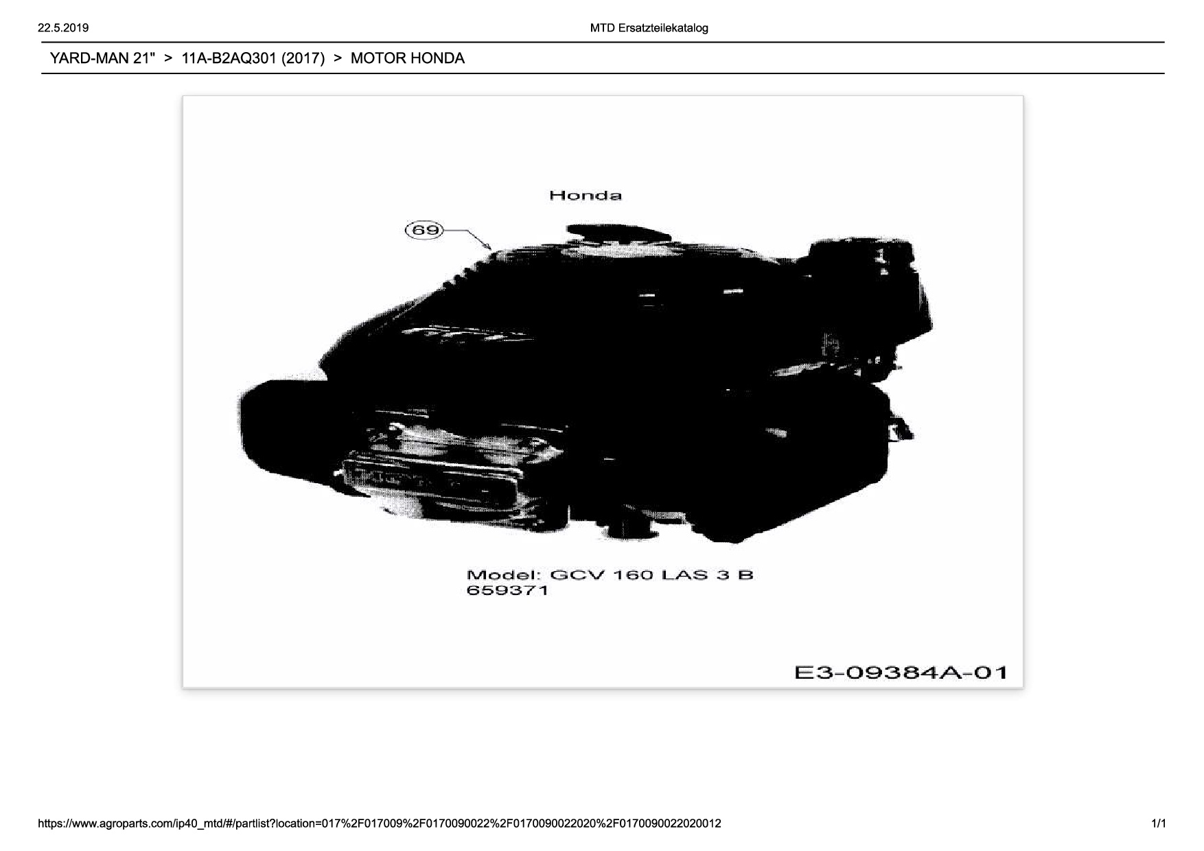 Ersatzteile für Motormäher YARD-MAN YARD-MAN 21" aus der Zeichnung Motor Honda:
