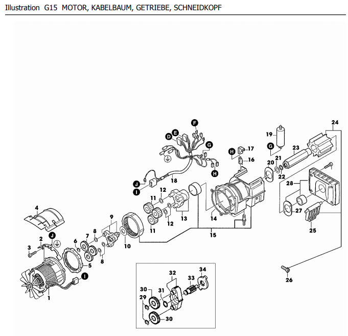 Motor, Kabelbaum, Getriebe, Schneidwerk