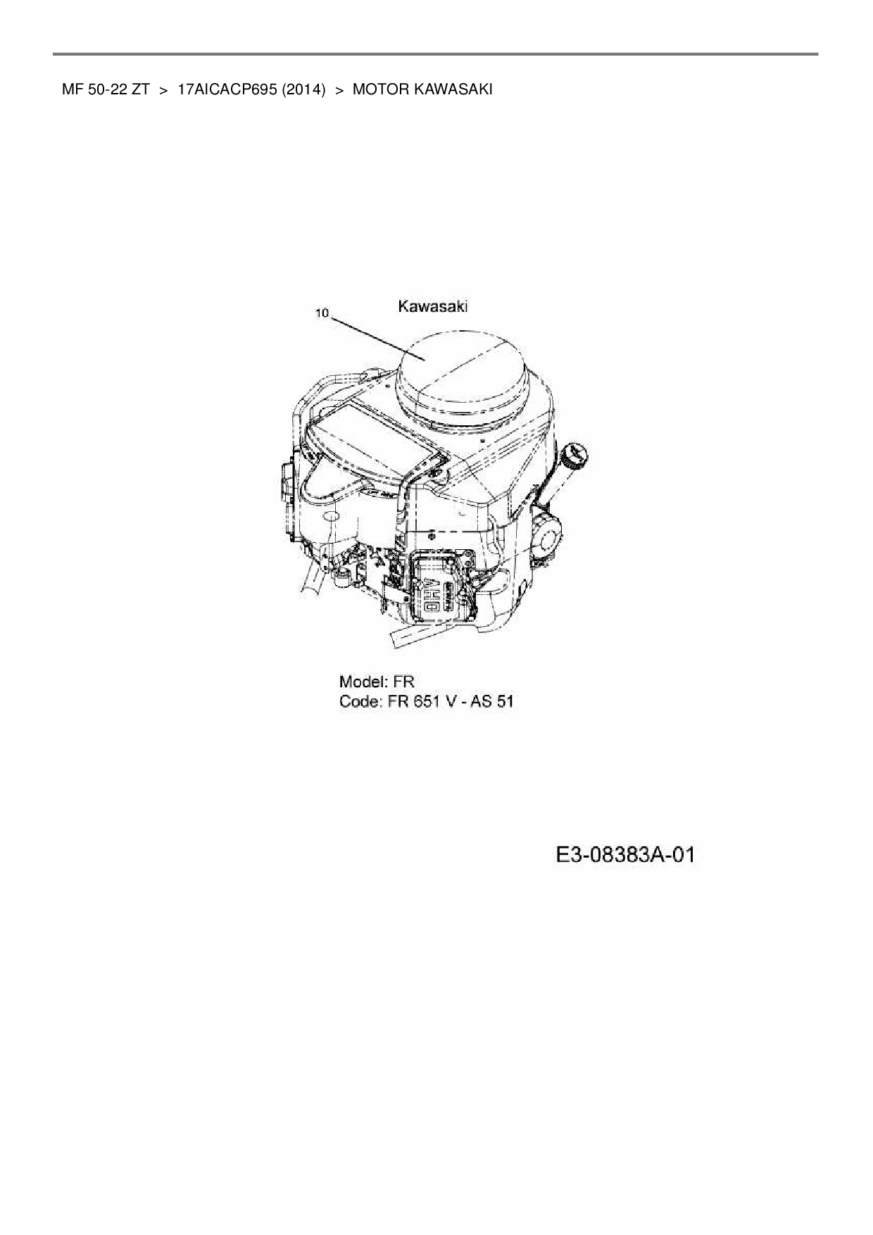 Ersatzteile für Zero Turn Massey Ferguson MF 50-22 ZT aus der Zeichnung Motor Kawasaki: