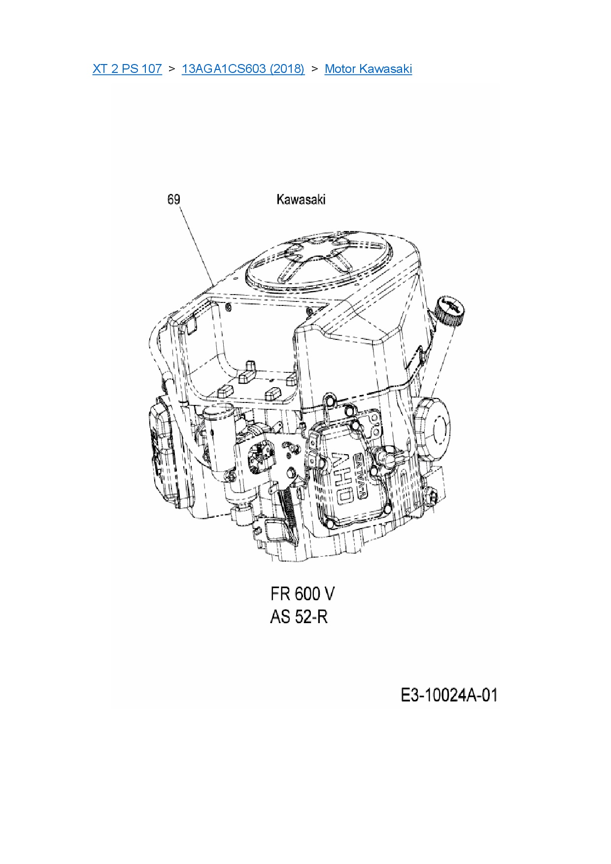 Ersatzteile für Rasentraktor Cub Cadet XT 2 PS 107 aus der Zeichnung Motor Kawasaki: