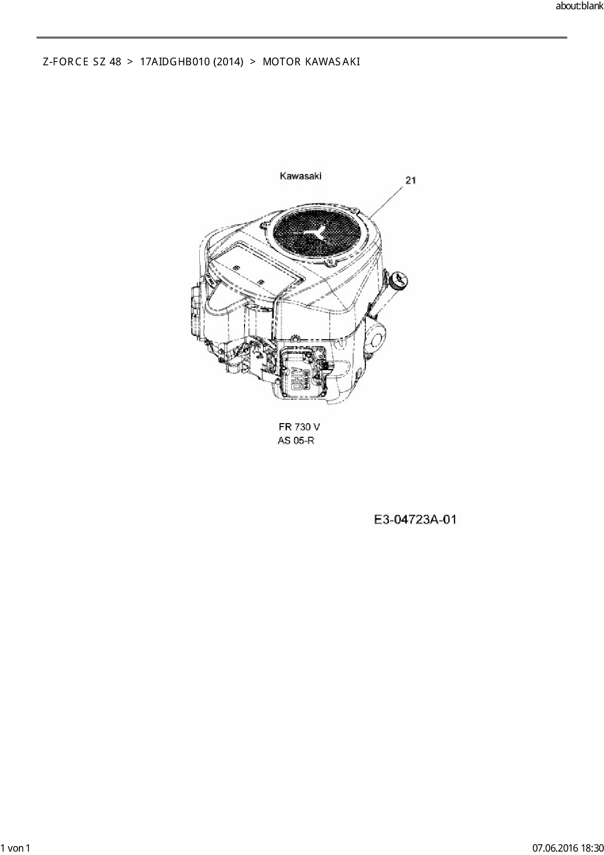 Ersatzteile für Zero Turn Cub Cadet Z-Force SZ 48 aus der Zeichnung Motor Kawasaki: