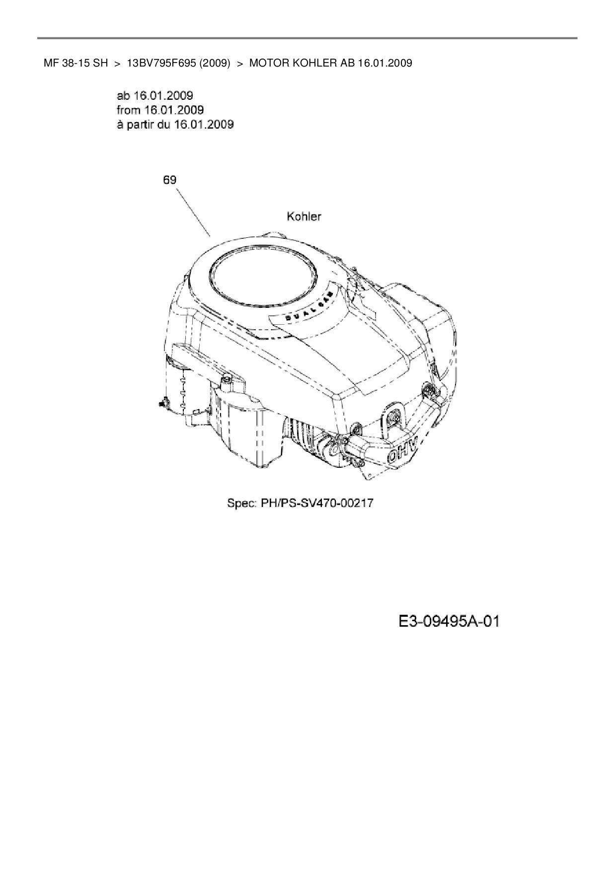 Ersatzteile für Rasentraktor Massey Ferguson MF 38-15 SH aus der Zeichnung Motor Kohler ab 16.01.2009: