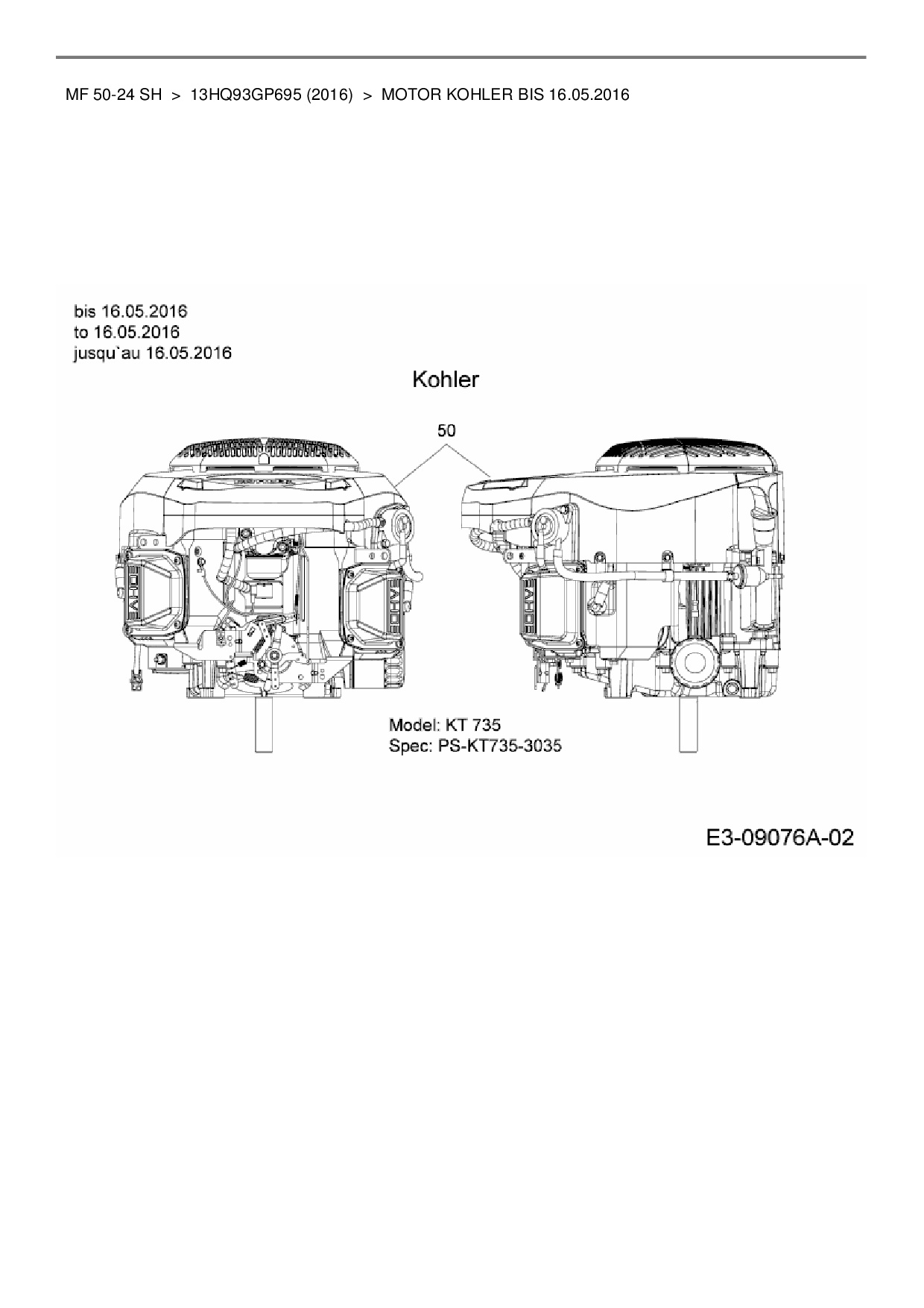 Ersatzteile für Rasentraktor Massey Ferguson MF 50-24 SH aus der Zeichnung Motor Kohler bis 16.05.2016: