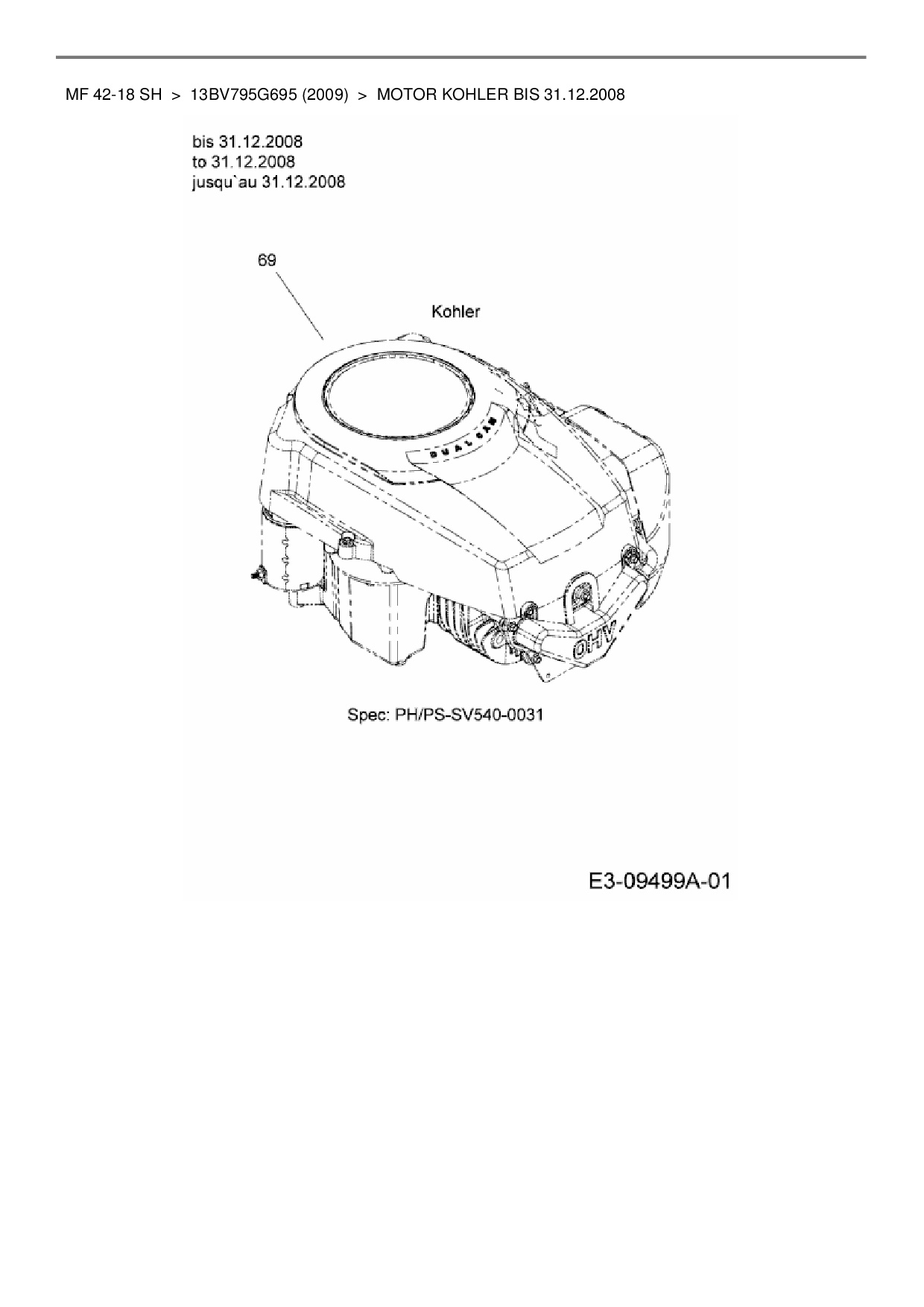 Ersatzteile für Rasentraktor Massey Ferguson MF 42-18 SH aus der Zeichnung Motor Kohler bis 31.12.2008: