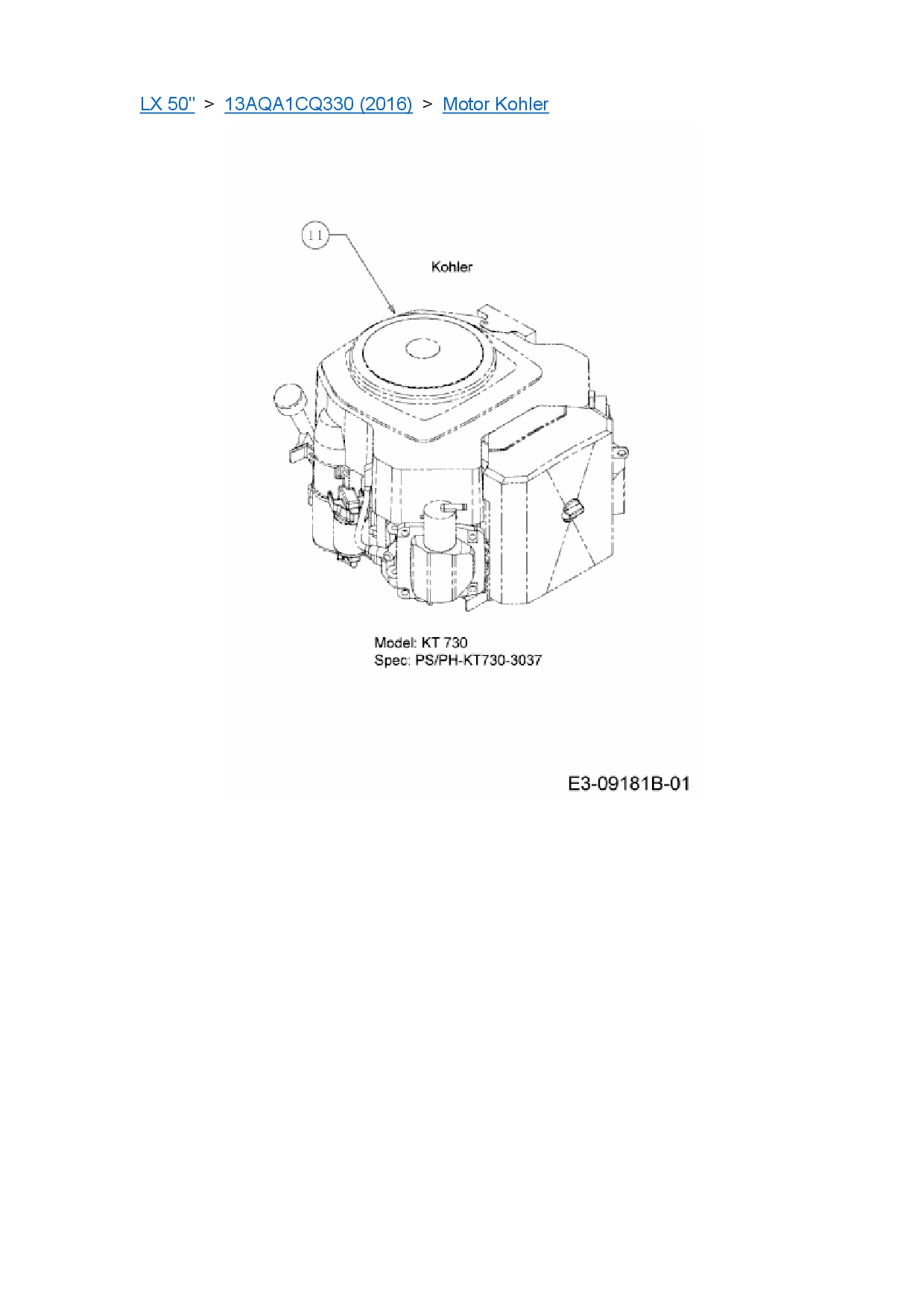 Download Ersatzteil-Zeichnung Cub Cadet LX 50" Zeichnung Motor Kohler (PDF-Format)