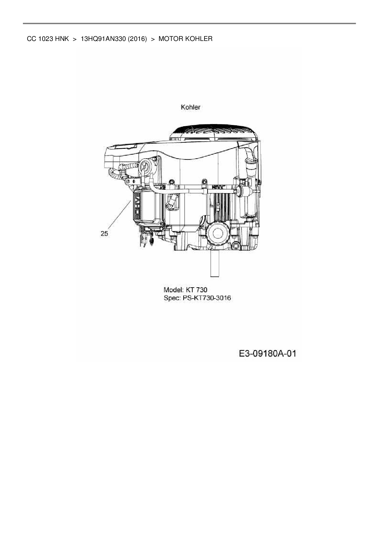 Download Ersatzteil-Zeichnung Cub Cadet CC 1023 HNK Zeichnung Motor Kohler (PDF-Format)