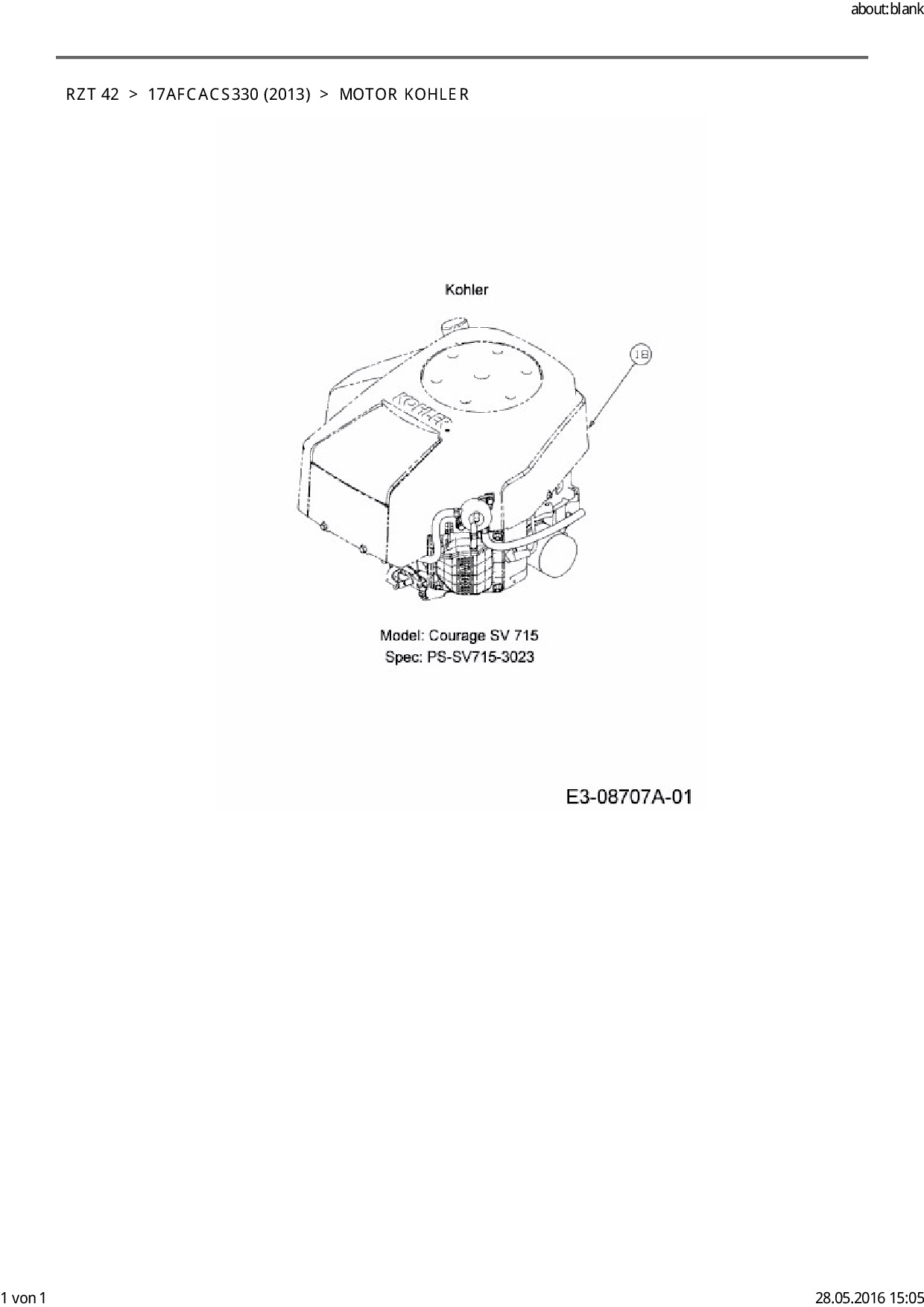 Ersatzteile für Zero Turn Cub Cadet RZT 42 aus der Zeichnung Motor Kohler:
