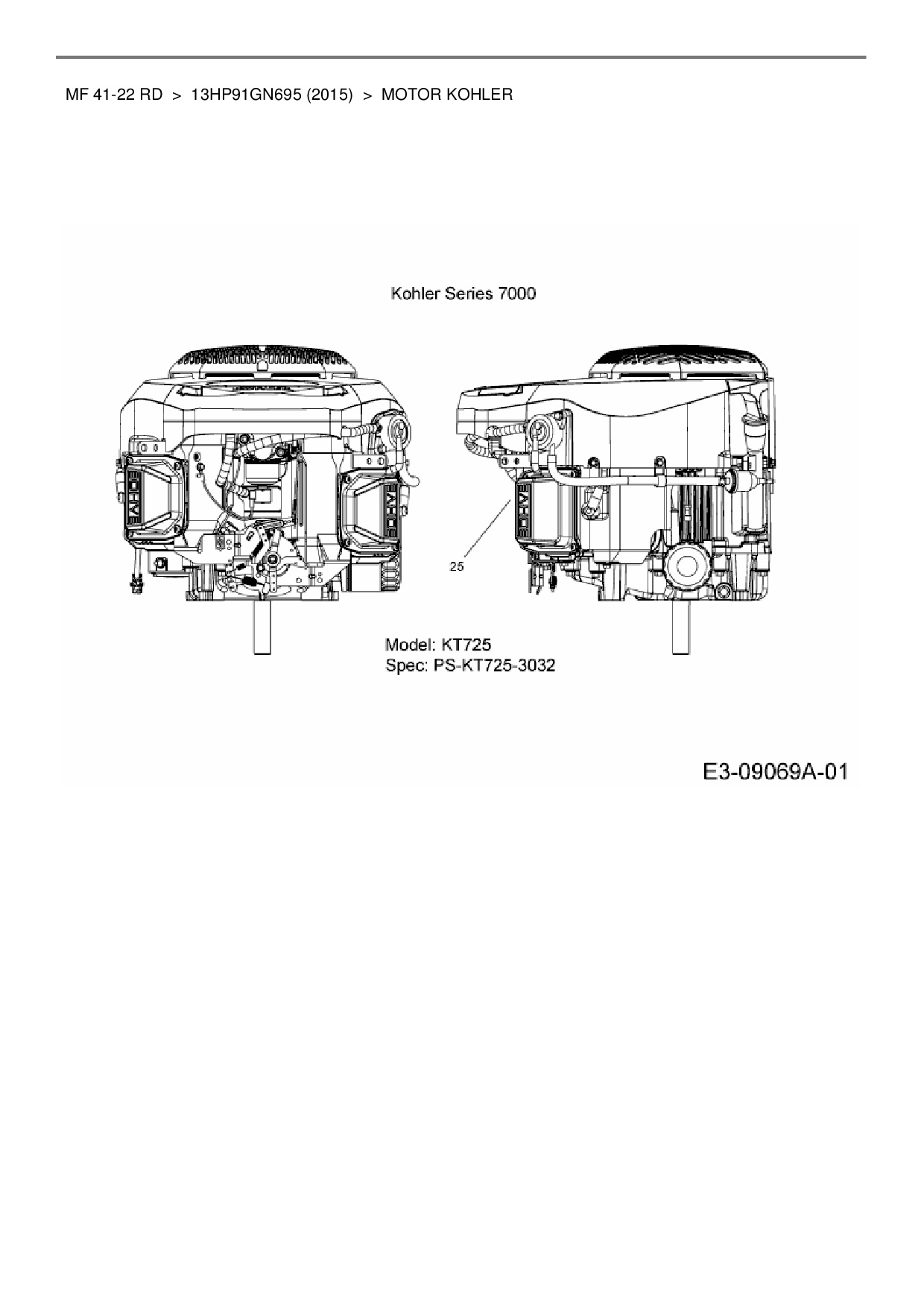 Ersatzteile für Rasentraktor Massey Ferguson MF 41-22 RD aus der Zeichnung Motor Kohler: