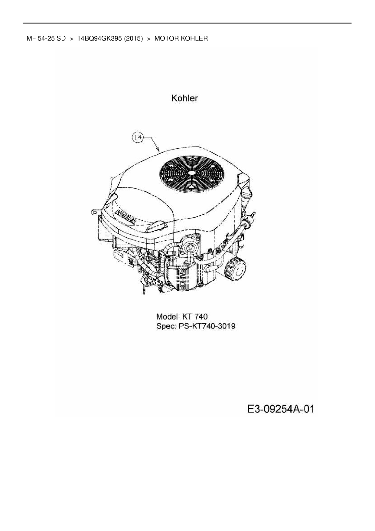 Ersatzteile für Gartentraktor Massey Ferguson MF 54-25 SD aus der Zeichnung Motor Kohler: