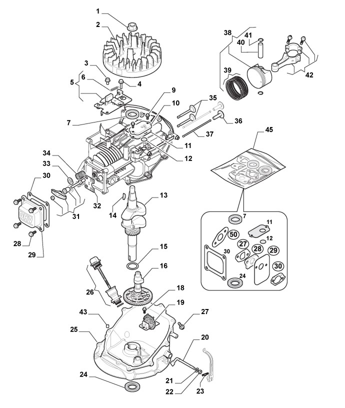 Hier finden Sie alle Ersatzteile von Castelgarden Benzinrasenmäher ab 2019 CS 484 (ID 295491043/19) aus der Zeichnung Motor - Kolben, Motorwelle: