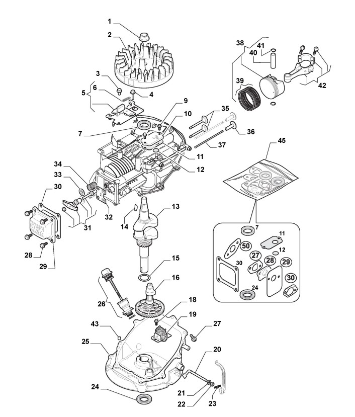 Hier finden Sie alle Ersatzteile von Castelgarden Benzinrasenmäher ab 2020 CS 484 (ID 295491043/19) aus der Zeichnung Motor - Kolben, Motorwelle: