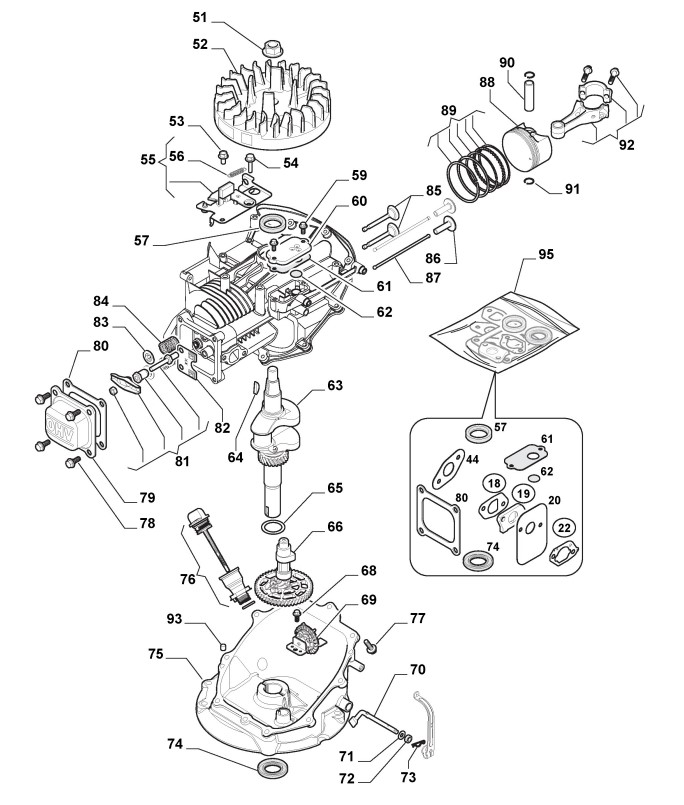 Hier finden Sie alle Ersatzteile von Castelgarden Benzinrasenmäher ab 2018 CS 484 S - G (ID 295492043/OX) aus der Zeichnung Motor - Kolben, Motorwelle: