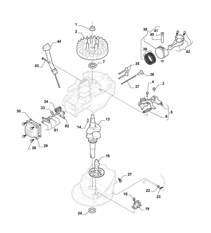 Hier finden Sie alle Ersatzteile von Castelgarden Benzinrasenmäher ab 2020 XM 50 S (ID 294512043/C20) aus der Zeichnung Motor - Kolben, Motorwelle:
