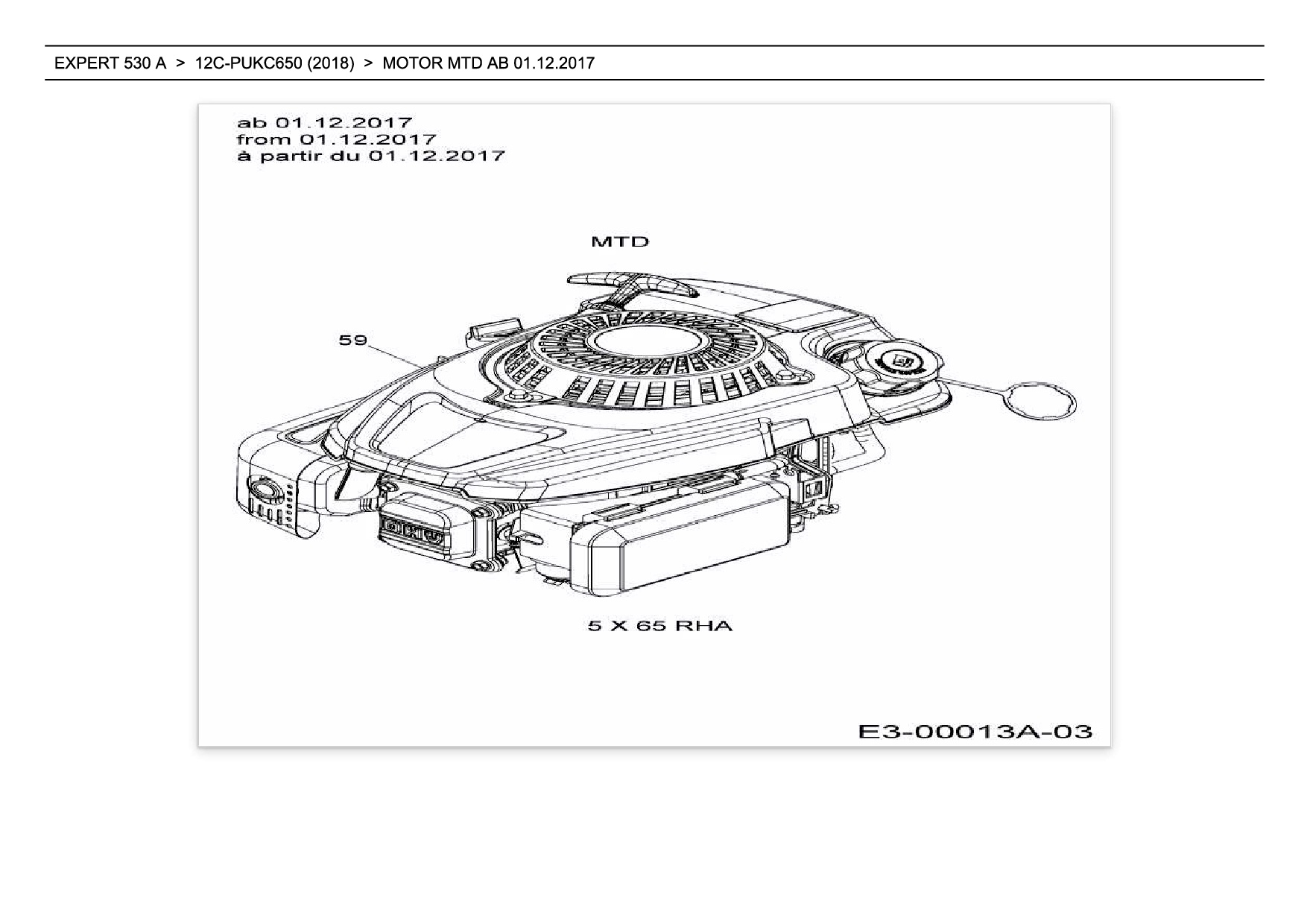 Ersatzteile für Motormäher mit Antrieb Wolf-Garten Expert EXPERT 530 A aus der Zeichnung Motor MTD ab 01.12.2017: